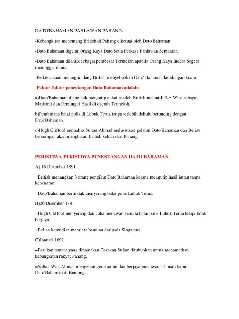 7 7 dato bahaman pahlawan pahang ppt download. Kesan penentangan dato bahaman terhadap penjajah british di pahang adalah . Siri penentangan dato' bahaman tahun peristiwa 1890 . Pasukan tentera yang dinamakan gerakan sultan .